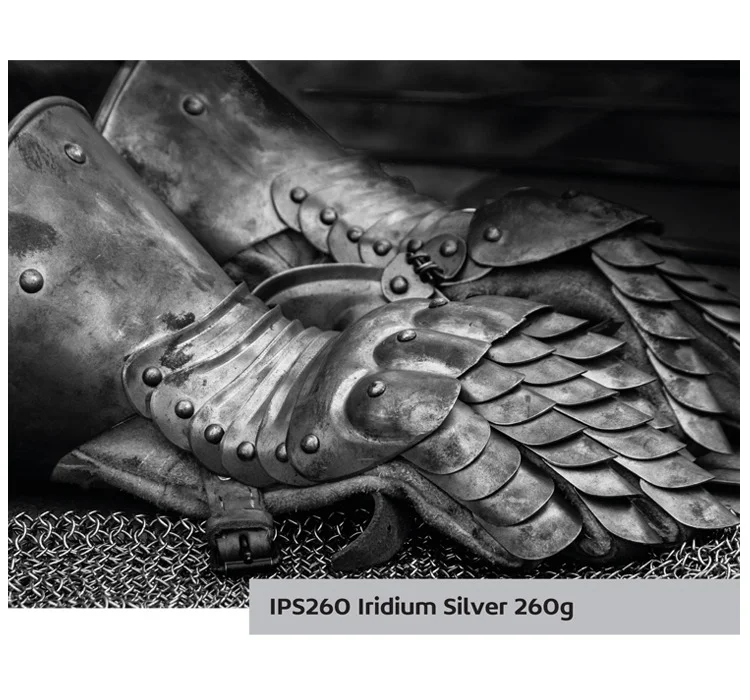 IPS260 Iridium Silver jest nowo opracowanym papierem fotograficznym ze specjalną powłoką atramentową o opalizującym połysku. Dzięki metaliczno-perłowej powierzchni papier jest idealny do zdjęć, w których należy podkreślić charakter metalu, do fotografii czarno-białej / portretowej, gdzie pożądane są specjalne opalizujące efekty. Fotorealistyczne, żywe i szczegółowe reprodukcje mogą zostać wydrukowane w rozdzielczości do 5760dpi. IPS260 Iridium Silver to wysokiej jakości papier fotograficzny, który ma uniwersalne zastosowanie na wszystkich drukarkach LFP z tuszami barwnikowymi i pigmentowymi. Nanoporowa powłoka zapewnia doskonałe, bardzo szczegółowe oddanie barw, z ostrymi konturami, w bardzo dużej gamie barw.
