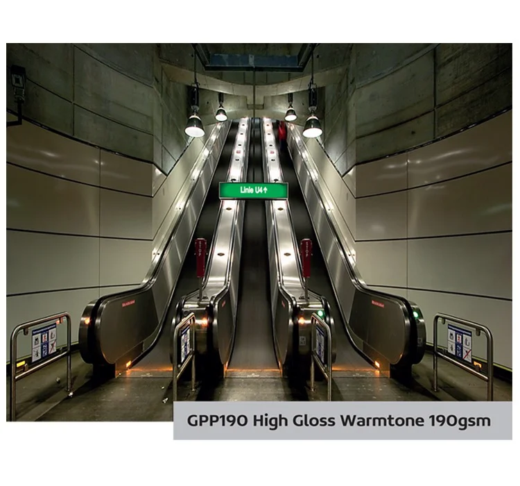Uniwersalny papier fotograficzny o wysokim połysku. Gwarantuje wierne odwzorowanie kolorów, żywe i bogate w szczegóły reprodukcje. Szybkoschnący, wodoodporny i odporny na rozmazywanie. GPP190 High Gloss Warmtone jest kompatybilny z tuszami pigmentowymi, jak i barwnikowymi, w głowicach piezo i bubblejet, o rozdzielczości do 1440 dpi. Szczególnie nadaje się do wydruków gdzie oprócz dużej szczegółowości i ostrych krawędzi, rolę odgrywają żywe kolory, które podkreślają fotorealizm reprodukcji. W związku zastosowaniem powłoki PE po obu stronach papieru ma on bardzo wysoką stabilność wymiarów. GPP190 nadaje się do laminacji na ciepło i na zimno.