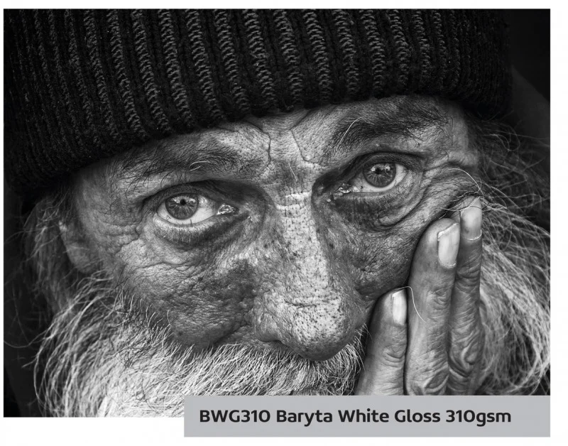 BWG310 Baryta White Gloss łączy w sobie zalety bawełnianego papieru artystycznego i klasycznej baryty. Siarczan baru zapewnia typowy połysk i sprawia, że BWG310 staje się papierem idealnie zastępującym tradycyjne papiery barytowe z laboratoriów analogowych. Struktura powierzchni z błyszczącą powłoką pomaga stworzyć efektowne czarno-białe obrazy, wydobywając wyrazisty charakter i wyjątkową szczegółowość. Papier ten tworzy spektakularne i niepowtarzalne odczucia, pozostawiając niezatarte wrażenie wizualne na każdym widzu.