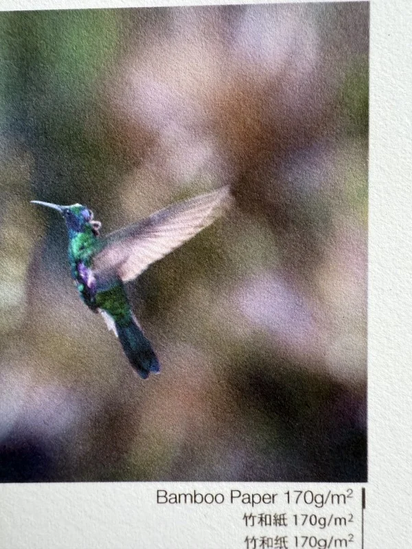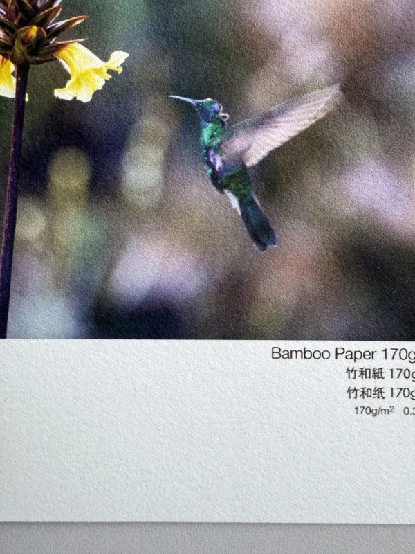 Bamboo 170gsm reprezentuje ekskluzywny wybór o organicznym charakterze, adresowany do artystów, fotografów oraz twórców hybrydowych druków, którzy zdają sobie sprawę z wyraźnych walorów ekologicznych tego papieru w zestawieniu z jego bawełnianymi odpowiednikami. Ten papier o gęstym, lecz jednocześnie nadzwyczaj subtelnie wykończonym splocie włókien, jest owocem wyjątkowej precyzji produkcji, której głównym celem jest osiągnięcie doskonałej jakości wydruku oraz archiwalnej trwałości. Jego istotnym składnikiem jest wyważona kompozycja 70% bambusa oraz 30% papieru z recyklingu. Proces tworzenia, od samego wstępnego etapu po finalne pokrycie i staranne opakowanie, odbywa się wyłącznie w Fabryce Awagami w Tokushimie, Japonia. Ta bezpośrednia kontrola umożliwia zapewnienie nie tylko najwyższej jakości, ale również zachowanie oryginalnego charakteru tego papieru, w pełni oddając jego wyjątkowe właściwości. Papier Bamboo 170 jest powlekany z obu stron, dla druku dwustronnego.