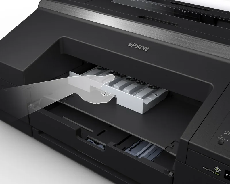 Nowe funkcje w drukarce SC-P5000 zapewniają jej niezawodne funkcjonowanie i skracają do minimum czas jej serwisowania. Obejmują one nowe pokrywy i zabezpieczenia ograniczające wnikanie kurzu, udoskonalony automatyczny układ kontroli dysz oraz przewodnik w trakcie wykonywania procedury czyszczenia.