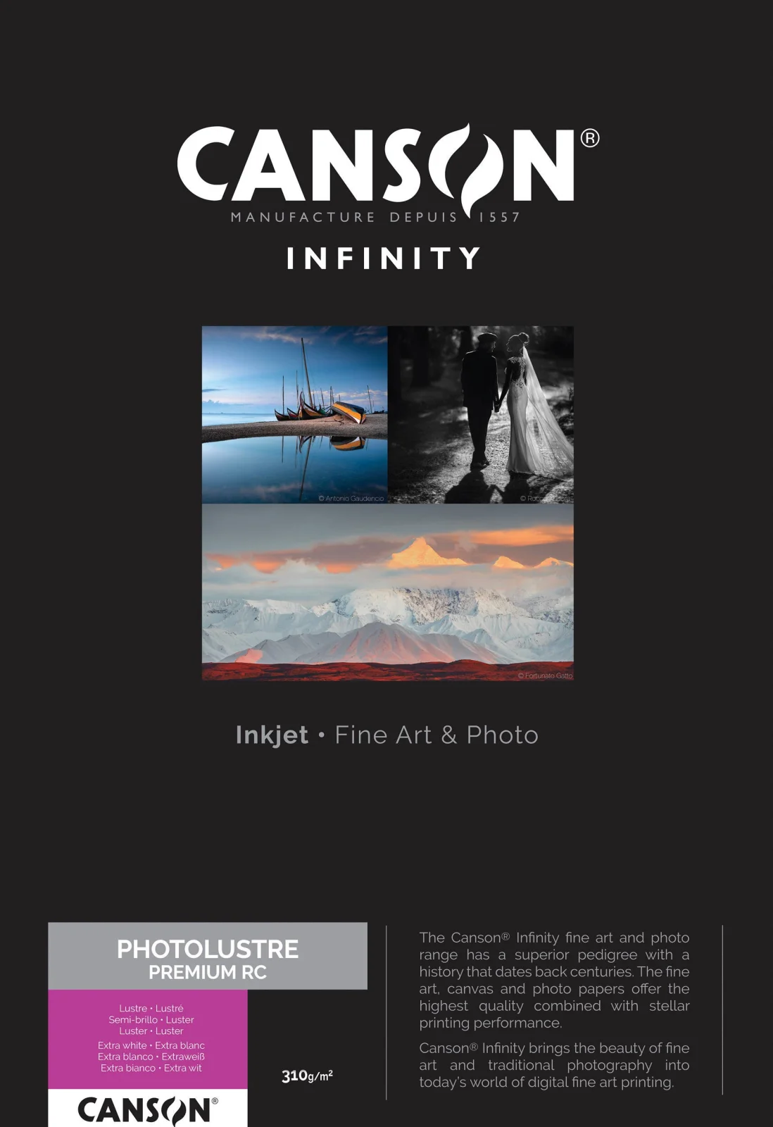 Canson Infinity Photo Lustre Premium RC to profesjonalny papier fotograficzny, stworzony z myślą o wymagających użytkownikach poszukujących najwyższej jakości wydruków. Wykonany z bezkwasowego papieru alfa-celulozowego i pokryty polietylenową warstwą żywiczną oraz mikroporowatą powłoką atramentową, zapewnia doskonałą stabilność obrazu i szybkie wysychanie atramentu. Charakterystyczne wykończenie typu lustre nadaje wydrukom elegancką, subtelnie połyskującą powierzchnię, która łączy w sobie zalety papierów matowych i błyszczących. Efekt ten ceniony jest w profesjonalnej fotografii, gdyż gwarantuje wysoką ostrość obrazu, głębokie czernie oraz szeroką gamę kolorystyczną, przy jednoczesnym ograniczeniu refleksów świetlnych. Papier został opracowany tak, aby spełniać najwyższe standardy trwałości archiwalnej, dzięki czemu doskonale nadaje się do ekspozycji, portfolio, wystaw, jak również do wysokiej jakości wydruków kolekcjonerskich.