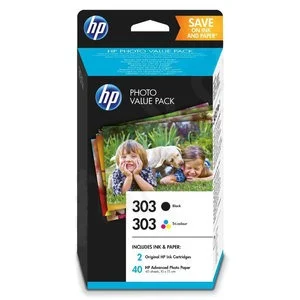 Zestaw tuszy HP 303 Photo Value - czarny / trójkolorowy + papier 40 arkuszy / 10×15 cm