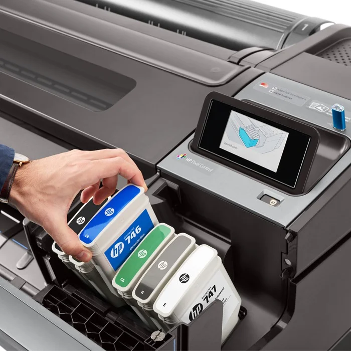 Nowe głowice drukujące HP 746 o wysokiej rozdzielczości do 2400 x 1200 dpi zapewniają wyraźne detale i kontrastowe kolory wydruków. Jasne atramenty są zbędne w przypadku technologii dual drop HP. Uzyskuj płynne gradienty, nawet w przypadku trudnych połączeń kolorów, dzięki funkcji HP Pixel Control.