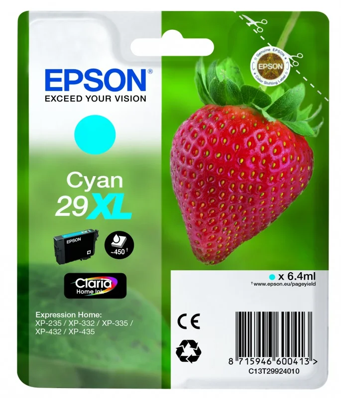 Opis Tusz EPSON 29XL T2992 C - błekitny (6,4 ml / 450 stron)