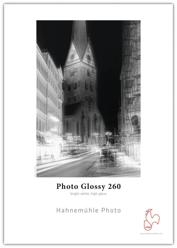 Hahnemühle Photo Glossy 260 to klasyczny papier fotograficzny do drukarek atramentowych. Materiał podłoża powleczony jest żywicą i ma mikroporową powłokę dostosowaną do druku atramentowego.