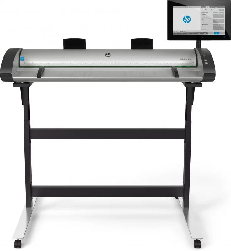 Skaner HP SD Pro; Podstawa; Ekran dotykowy (panel PC); Skrócona instrukcja obsługi; Prowadnice nośników; Arkusz instalacyjny; Oprogramowanie kopiowania/skanowania; Oprogramowanie dokumentacji; Przewody Ethernet (x2); Przewody zasilające
