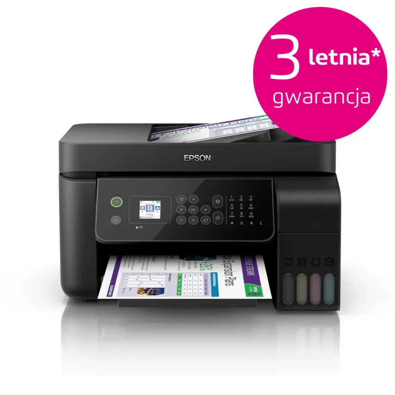 Uwolnij się od zmartwień o koszty drukowania dzięki temu bezkartridżowemu urządzeniu 4 w 1 EcoTank. Zapewnia on bardzo niski koszt druku jednej strony dzięki dołączonemu zapasowi atramentu nawet na trzy lata1, który może pomóc zaoszczędzić do 90%2 na kosztach atramentu. Ta kompaktowa drukarka atramentowa A4 ma automatyczny podajnik dokumentów (ADF) oraz szereg opcji łączności, w tym Wi-Fi, Wi-Fi Direct i Ethernet.