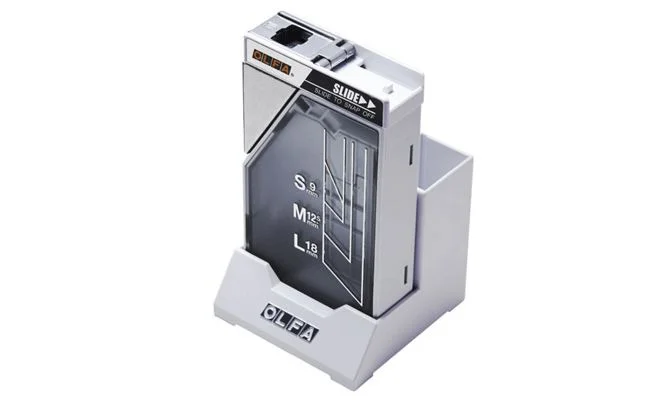 Cały proces odłamywania odbywa się wewnątrz pojemnika - strach przed odłamywaniem znika, a odłamane segmenty są bezpiecznie przechowywane w środku. Podstawka odłamywacza to równocześnie wygodne miejsce na przechowywanie zapasowych ostrzy i innych przyborów do cięcia.
