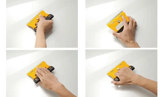 Po zdjęciu czarnej osłony ostrza, można ją nasunąć na drugą stronę uchwytu zwiększając jego grubość (14mm) i wygodę użytkowania. Osłonę można przesuwać w lewo albo w prawo aby idealnie dopasować się do warunków skrobania. Specjalne wypustki znajdujące się wewnątrz osłony ostrza pomagają w utrzymywaniu się osłony w wybranym położeniu. Otwory z boków uchwytu pozwalają na przypięcie smyczy lub linki zabezpieczającej przed upadkiem narzędzia - ważne przy pracy na wysokości.