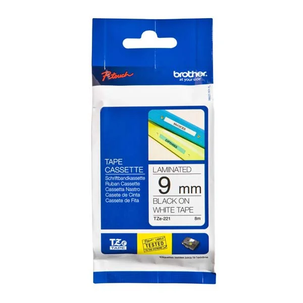 Opis Taśma BROTHER TZe-221 laminowana - 9 mm, czarny druk/biały podkład