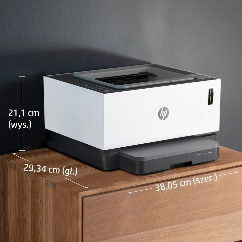 Drukarka laserowa HP Neverstop M1000a; Czarny, oryginalny bęben obrazowy HP (zapas tonera na 5000 stron, okres eksploatacji 20 000 stron); Instrukcja obsługi; Instrukcja instalacyjna; Ulotka dotycząca przepisów; Ulotka dot. pomocy technicznej; Karta gwarancyjna; Przewód zasilania
