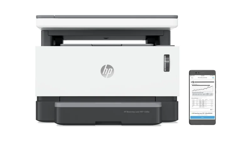 Drukarka laserowa HP Neverstop 1200w; Fabrycznie zainstalowany czarny, oryginalny bęben obrazowy HP (zapas tonera na 5000 stron, okres eksploatacji 20 000 stron); Instrukcja obsługi; Instrukcja instalacyjna; Ulotka dotycząca przepisów; Ulotka dot. pomocy technicznej; Karta gwarancyjna; Przewód zasilania; Przewód USB