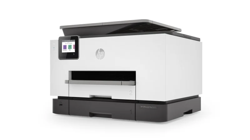 Urządzenie wielofunkcyjne HP OfficeJet Pro 9023; Czarny startowy wkład atramentowy HP 963 (ok. 1000 stron); Błękitny startowy wkład atramentowy HP 963 (ok. 700 stron); Purpurowy startowy wkład atramentowy HP 963 (ok. 700 stron); Żółty startowy wkład atramentowy HP 963 (ok. 700 stron); Ulotka informująca o braku płyty CD; Ulotka ostrzegawcza dot. atramentu; Przewód zasilający; Arkusz instalacyjny; Podręcznik użytkownika
