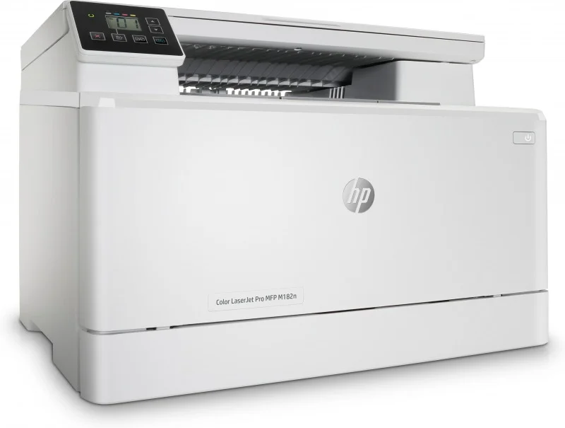 Urządzenie wielofunkcyjne HP Color LaserJet Pro M182n; Początkowe wkłady HP LaserJet: wydajność 700 stron w kolorze (C/Y/M) i 800 stron w czerni; Instrukcja instalacji; Przewód zasilający