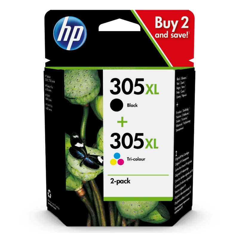 Opis Dwupak wkładów atramentowych HP 305 BK/Tri-color XL (240 stron)