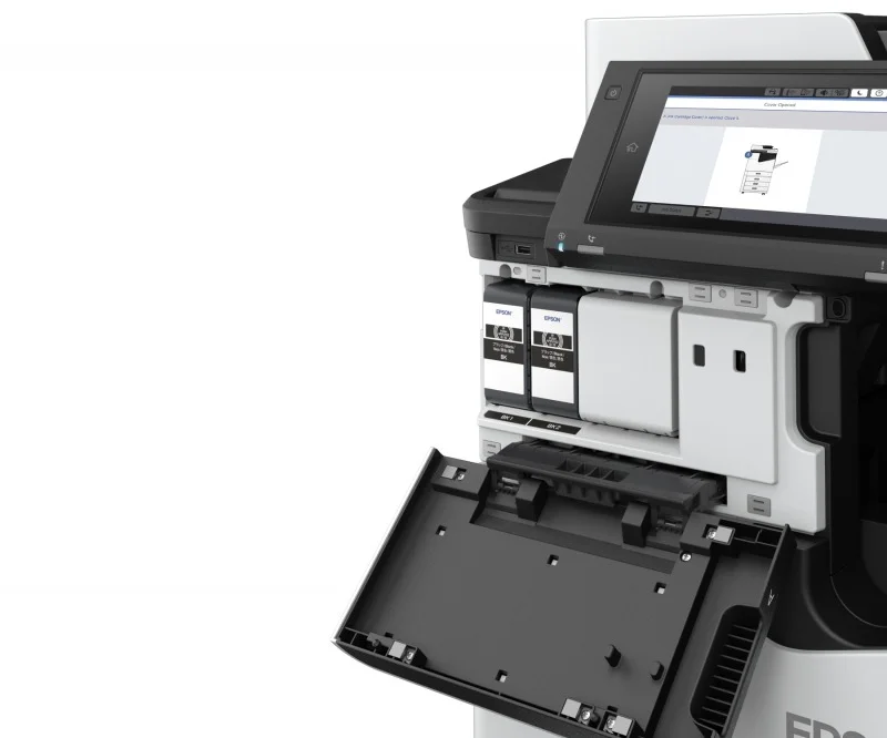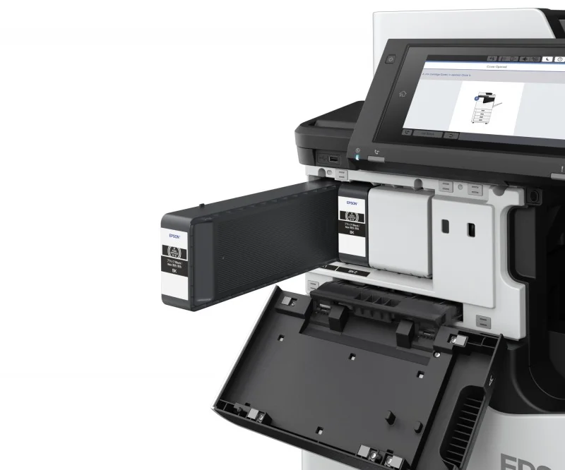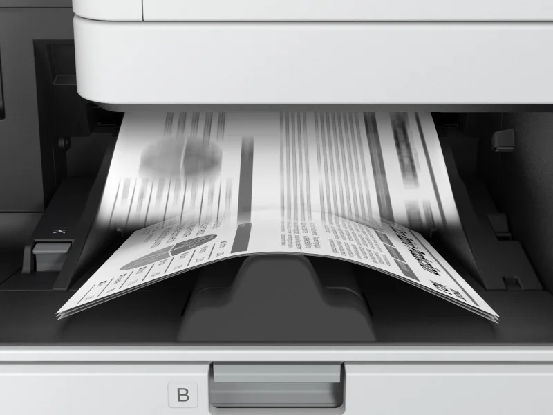 Zużycie energii mniejsze nawet o 82% w porównaniu z drukarkami laserowymi. Zredukowana ilość odpadów oraz prosty mechanizm sprawiają, że urządzenie zużywa mniej energii i zasobów, dzięki czemu jest bardziej przyjazne dla środowiska. Korzystaj z dużej pojemności podajnika wynoszącej 5350 arkuszy i drukuj do 120 tys. stron czarno-białych bez uzupełniania atramentu.