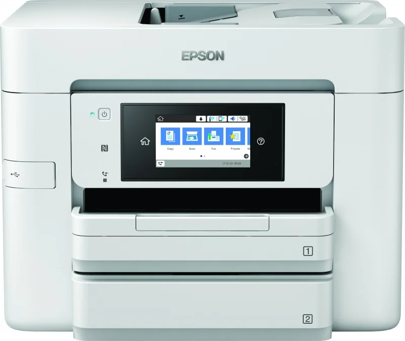 Popraw wydajność swojego biura dzięki automatycznemu dwustronnemu podajnikowi dokumentów na 50 arkuszy i dwóm tacom papieru po 250 arkuszy każda. Stylowe i kompaktowe urządzenie WF-4745 posiada ekran dotykowy o przekątnej 10,9 cm.