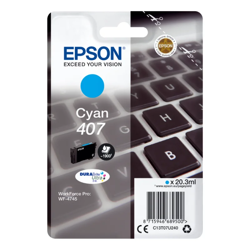 Opis Tusz EPSON 407 C - błękitny (20,3 ml)