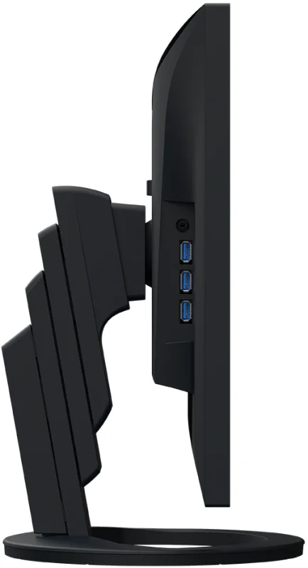Monitor wyposażono w stabilną, ergonomiczną podstawę, która umożliwia pełną regulację w zakresie wysokości, nachylenia, obrotu w poziomie (swivel) oraz pionowego ustawienia ekranu (pivot), gwarantując tym samym maksymalną wygodę użytkowania. Dzięki temu użytkownik może precyzyjnie dopasować pozycję monitora do własnych potrzeb i zadbać o prawidłową postawę ciała podczas pracy. Zakres regulacji wysokości pozwala obniżyć ekran niemal do poziomu podstawy, co umożliwia ergonomiczne ustawienie górnej krawędzi obrazu poniżej linii wzroku. Możliwość pracy w trybie portretowym jest szczególnie przydatna przy edycji tekstów, zdjęć, grafiki lub dokumentów o dużej długości. Funkcja obrotu i pochylania dodatkowo zwiększa elastyczność ustawień oraz komfort korzystania z urządzenia. Taka konstrukcja podstawy sprawia, że monitor idealnie sprawdza się w nowoczesnym środowisku biurowym oraz w pracy zdalnej, zapewniając wygodę i większą efektywność.