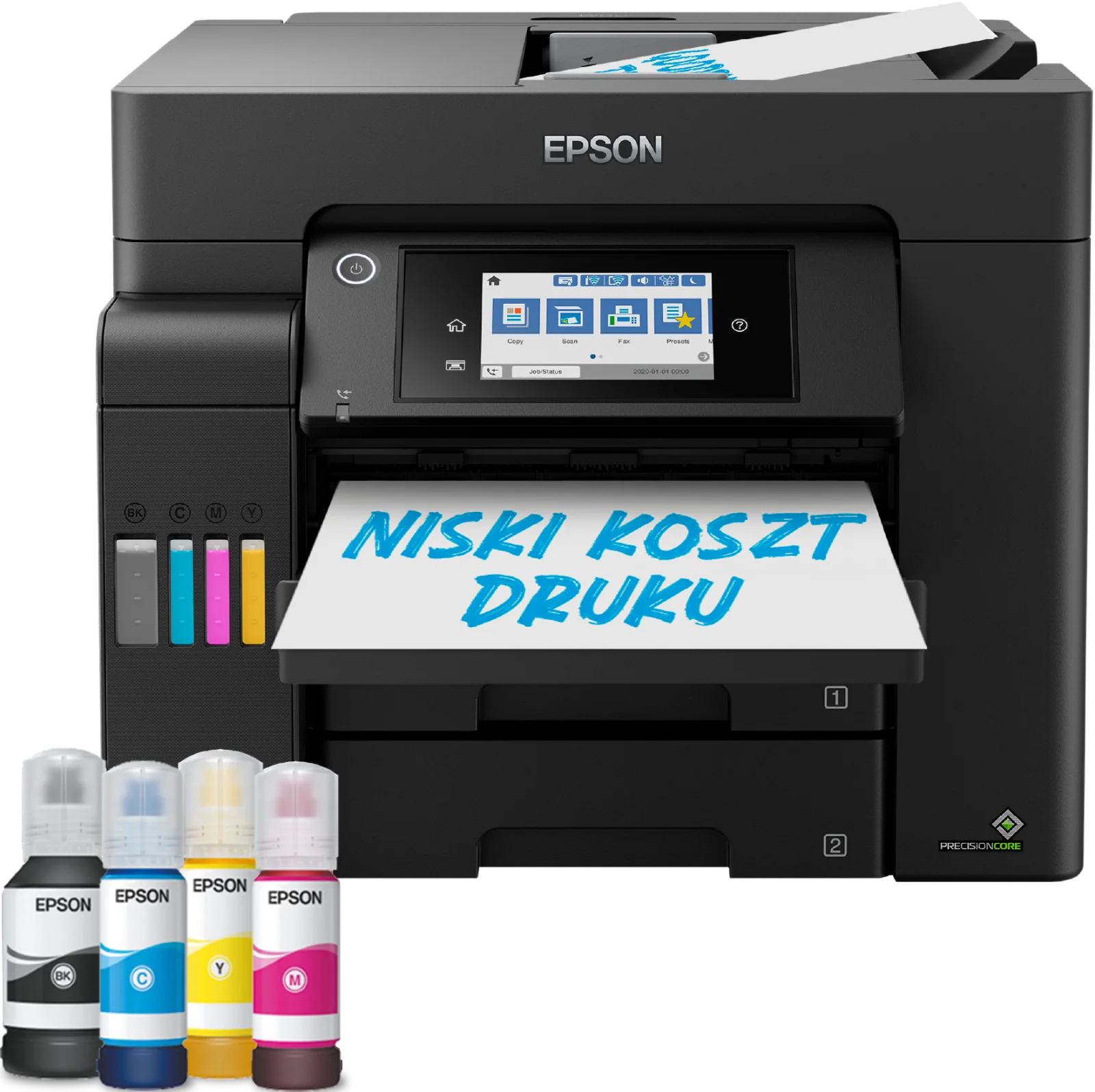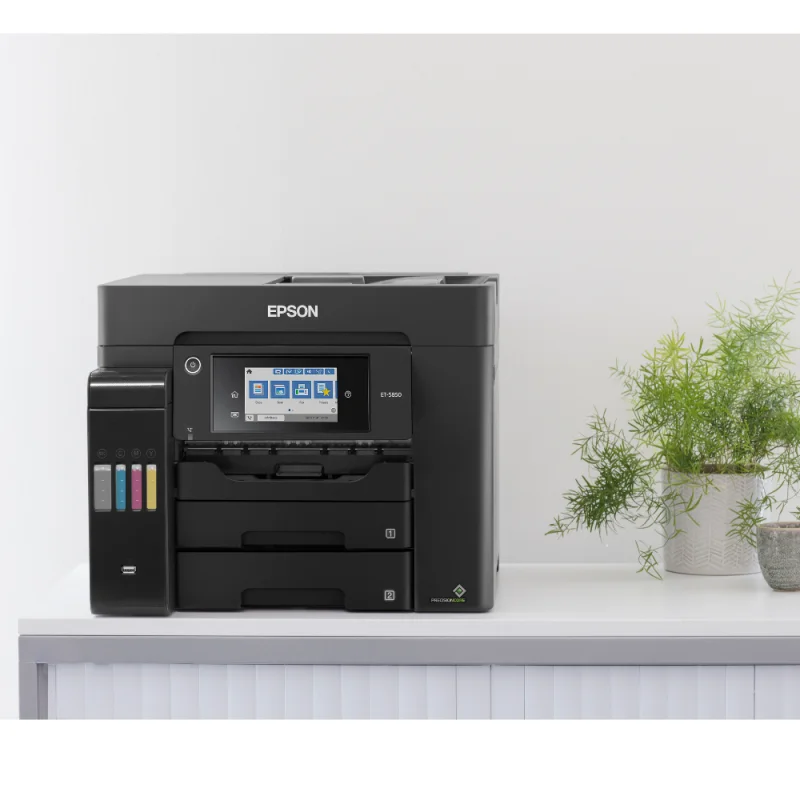 Epson EcoTank L6550 to wszechstronne urządzenie wielofunkcyjne, które zapewnia przewagę dzięki swojej szybkości i wydajności. Potrafi wydrukować pierwszą stronę w zaledwie 5,5 sekundy i osiąga prędkość drukowania do 25 stron na minutę. Urządzenie oferuje szybkie drukowanie dwustronne oraz automatyczny podajnik dokumentów, co przyspiesza realizację codziennych zadań. Model L6550 został zaprojektowany z myślą o użytku biznesowym, oferując funkcje drukowania, skanowania, kopiowania i faksowania. Wybór funkcji jest intuicyjny dzięki dotykowemu ekranowi LCD. Jedną z kluczowych zalet urządzenia EcoTank jest niezwykle niski koszt wydruku strony. W przeciwieństwie do tradycyjnych drukarek, EcoTank wyposażono w duże pojemniki na atrament, które można uzupełniać za pomocą niedrogich butelek z atramentem. Epson EcoTank L6550 posiada dwa przednie podajniki papieru A4, każdy o pojemności 250 ark, oraz tylny podajnik o pojemności 50 ark.