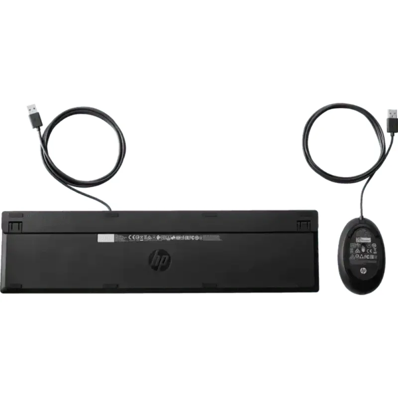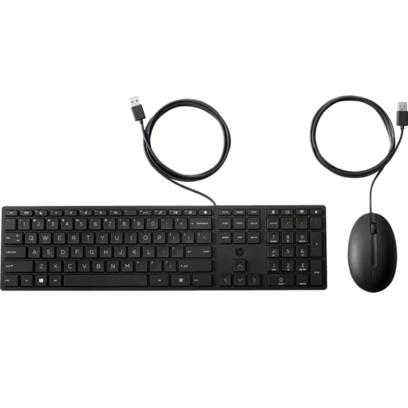 Przewodowa klawiatura i myszka firmy HP. Klawiatura jest wyposażona w wygodne, niskoprofilowe i ciche klawisze ułatwiające wprowadzanie danych. Zaprojektowana została w pomniejszonej wersji, w stylu komputera przenośnego, co pozwala na zaoszczędzenie miejsca. Mysz posiada uniwersalny kształt, dzięki czemu umożliwia wygodną obsługę zarówno osobom praworęcznym, jak i leworęcznym. Kolor czarny.