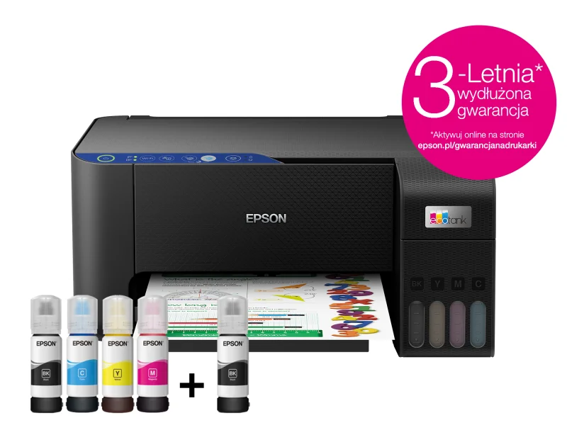 Epson EcoTank L3251 to nie tylko wydajność, ale również gwarancja bezbłędnej pracy. Dzięki tym aspektom stanie się niezastąpionym narzędziem w Twoim domu. Dlatego już teraz pożegnaj niedogodności związane z kartridżami i ciesz się doskonałym drukowaniem z profesjonalną wielofunkcyjną drukarką Epson EcoTank L3251. Dzięki drukarce Epson EcoTank L3251 możesz zaoszczędzić aż do 90% na kosztach drukowania w porównaniu z tradycyjnymi drukarkami atramentowymi. W zestawie znajduje się atrament, który wystarcza nawet na 3 lata codziennego użytkowania. Możesz wydrukować do 8,100 stron w czerni i 6,500 stron w kolorze, co stanowi równowartość 66 kartridży. To naprawdę opłacalna inwestycja w wydajność i oszczędności. Ta drukarka jest gotowa na współpracę z Twoją istniejącą infrastrukturą domową. Możesz drukować z telefonu komórkowego, tabletu lub laptopa, a dzięki aplikacji Epson Smart Panel, zarządzanie drukarką staje się proste i wygodne. Możesz drukować dokumenty i zdjęcia, konfigurować urządzenie, monitorować jego działanie i rozwiązywać problemy, wszystko za pomocą smartfona lub tabletu.