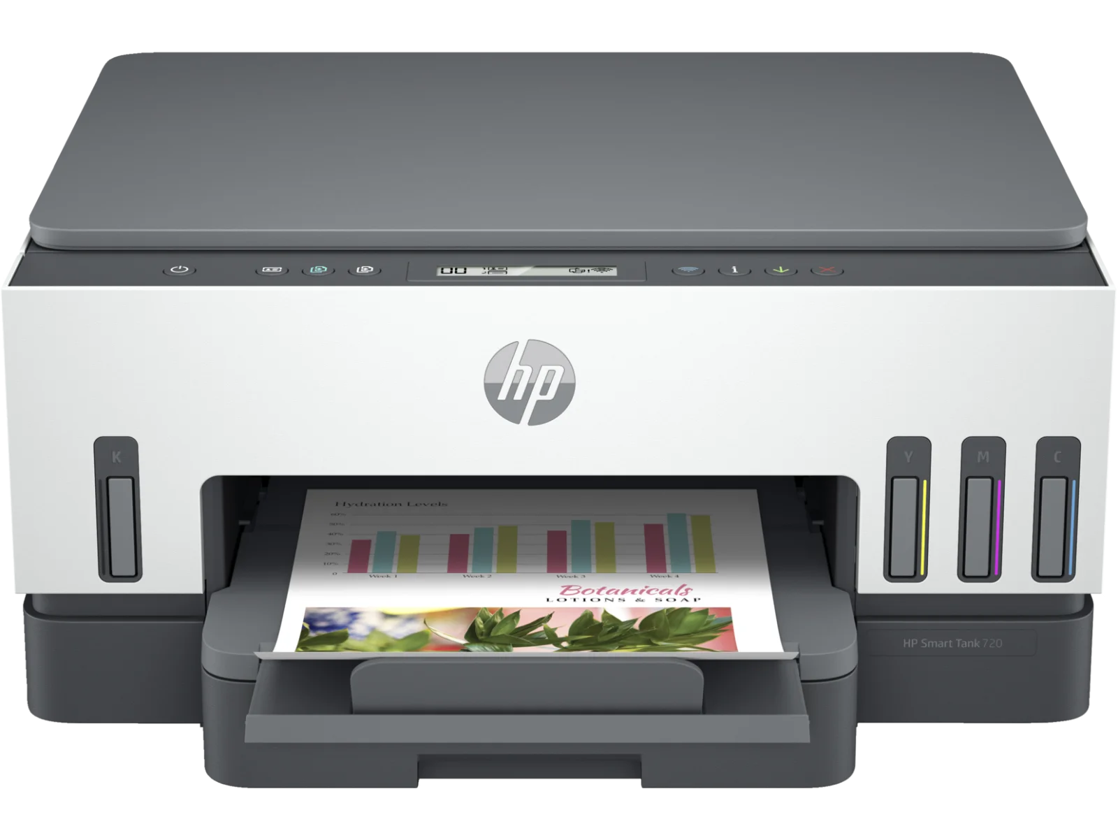 Oryginalne atramenty HP zapewniają doskonałą jakość druku - wyraźny, głęboki tekst oraz nasycone, trwałe kolory. Dzięki integracji z aplikacją HP Smart możliwe jest drukowanie i skanowanie bezpośrednio z poziomu urządzenia mobilnego. W zestawie z drukarką znajdują się zapasy atramentu pozwalające na wydrukowanie nawet do 18 000 stron w czerni lub 8000 stron w kolorze. System uzupełniania tuszu HP został zaprojektowany tak, by umożliwić łatwe, szybkie i bezproblemowe napełnianie zbiorników - bez ryzyka rozlania czy zabrudzeń. Takie rozwiązanie czyni drukowanie ekonomicznym i przyjaznym dla użytkownika nawet przy dużych nakładach. HP Smart Tank 720 to produkt stworzony z troską o środowisko - ponad 25% użytych tworzyw sztucznych pochodzi z recyklingu starych drukarek i urządzeń elektronicznych. Posiada certyfikat EPEAT® Silver, potwierdzający jego zgodność z wysokimi standardami środowiskowymi.