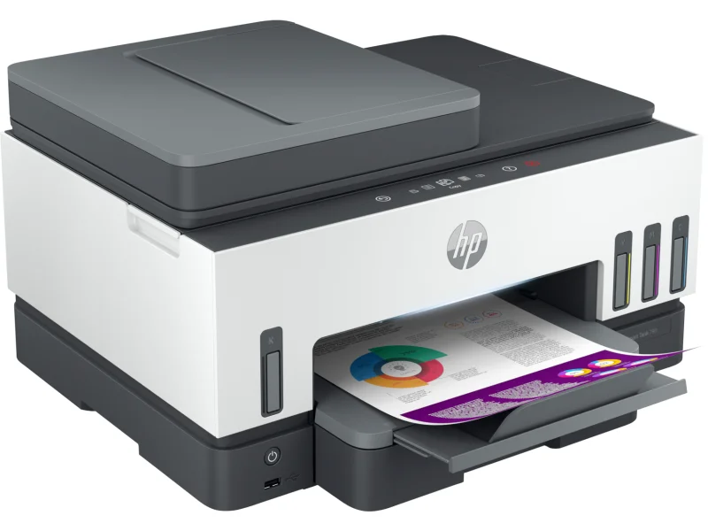 HP Smart Tank 790 to nowoczesne urządzenie wielofunkcyjne zaprojektowane z myślą o użytkownikach domowych oraz małych biurach, które oczekują wysokiej wydajności, niskich kosztów eksploatacji i intuicyjnej obsługi. Dzięki przemyślanej konstrukcji oraz zaawansowanym funkcjom urządzenie doskonale sprawdza się w codziennym drukowaniu, skanowaniu i kopiowaniu dokumentów. Proces konfiguracji został maksymalnie uproszczony - użytkownik może skorzystać z przejrzystych instrukcji wideo krok po kroku, co pozwala szybko rozpocząć pracę bez konieczności posiadania specjalistycznej wiedzy technicznej. Stabilne i szybkie połączenie zapewnia dwuzakresowe Wi-Fi z funkcją automatycznego łączenia, gwarantujące niezawodną komunikację z urządzeniami. Intuicyjny panel dotykowy umożliwia wygodne zarządzanie wszystkimi funkcjami drukarki, a aplikacja HP Smart pozwala na zdalne drukowanie i skanowanie bezpośrednio ze smartfona.