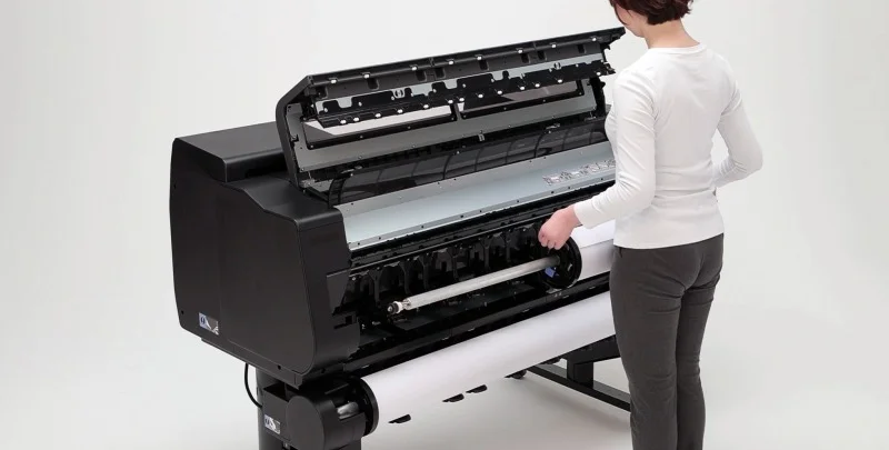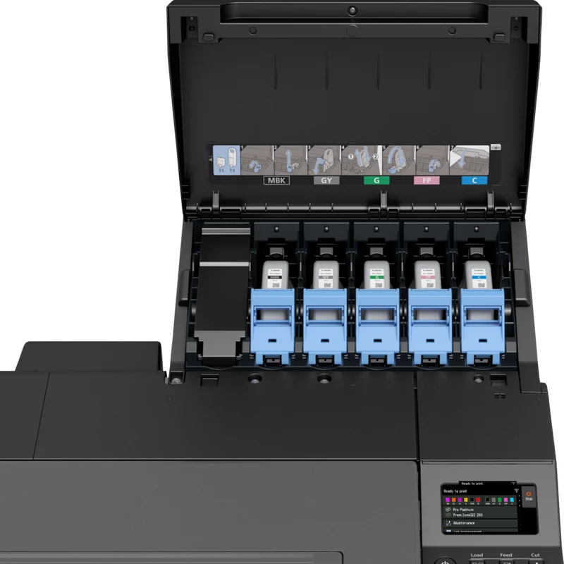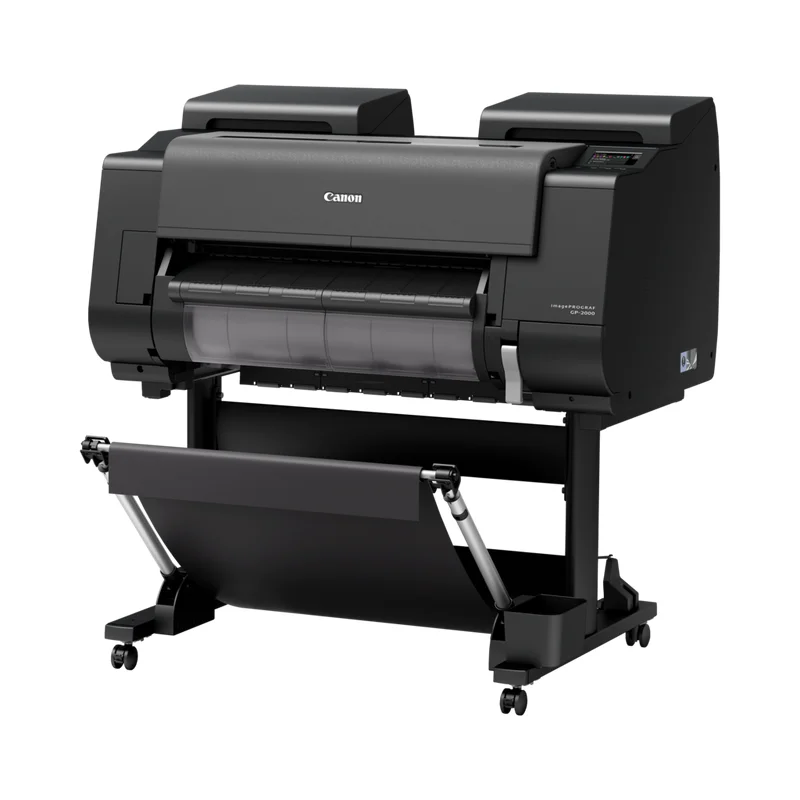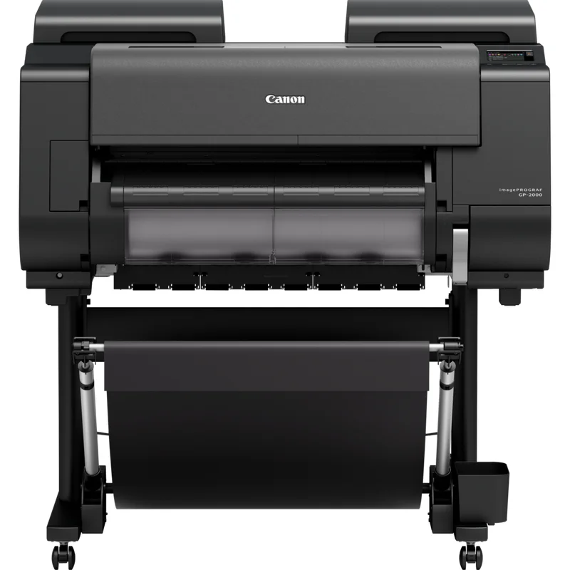 Kompaktowa zwarta forma. Canon imagePROGRAF GP-2000 charakteryzują się innowacyjnym designem, który pozwala zamknąć ogromny potencjał wielkoformatowego druku w niezwykle kompaktowej formie. To idealne rozwiązanie dla niewielkich firm działających w branży poligraficznej, agencji reklamowych czy innych organizacji zajmujących się produkcją dużej ilości wielkoformatowej grafiki. Wszystkie operacje związane z drukowaniem, takie jak usuwanie wydruków czy wymiana roli papieru lub atramentu, można wykonywać od przodu drukarki. Dzięki temu Canon GP-2000 można łatwo instalować przy ścianie, oszczędzając cenną przestrzeń w Twoim biurze.