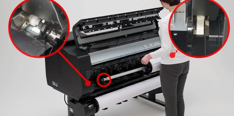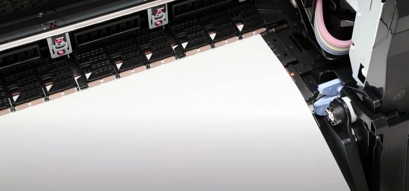 Automatyzacja funkcji. Canon GP-2000 Oferuje swobodę w tworzeniu projektów, które rozciągają się na całej powierzchni wybranych mediów - drukuj bez żadnych ograniczeń. Dodatkowo, możesz korzystać z funkcji drukowania bez marginesów z trzech stron, nawet jeśli media mają nieodpowiednią szerokość. W takim przypadku wystarczy przyciąć media z jednej strony, aby uzyskać doskonałe wydruki. Alternatywnie, możesz drukować całkowicie bez marginesów na mediach o odpowiednich rozmiarach. Zaawansowany algorytm, oparty na wielu czujnikach, jest w stanie precyzyjnie wykrywać krawędzie papieru i regulować marginesy, co znacząco ułatwia proces drukowania.