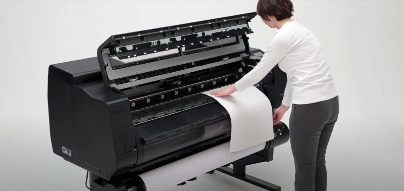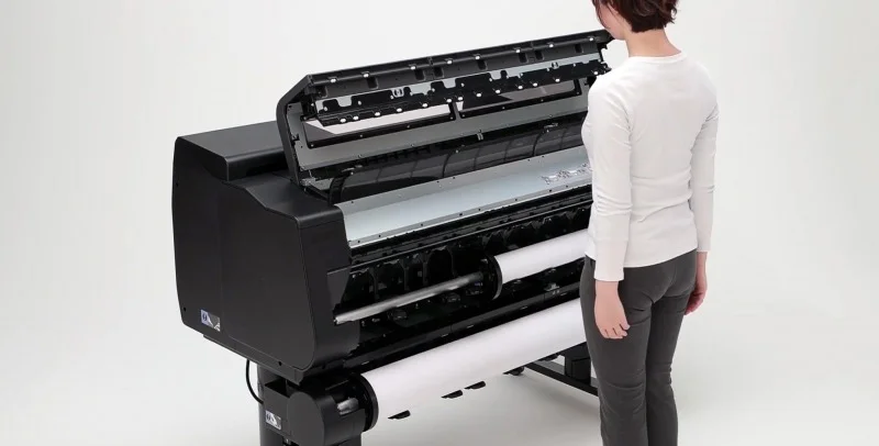 Kompaktowa zwarta forma. Canon imagePROGRAF GP-2000 charakteryzują się innowacyjnym designem, który pozwala zamknąć ogromny potencjał wielkoformatowego druku w niezwykle kompaktowej formie. To idealne rozwiązanie dla niewielkich firm działających w branży poligraficznej, agencji reklamowych czy innych organizacji zajmujących się produkcją dużej ilości wielkoformatowej grafiki. Wszystkie operacje związane z drukowaniem, takie jak usuwanie wydruków czy wymiana roli papieru lub atramentu, można wykonywać od przodu drukarki. Dzięki temu Canon GP-2000 można łatwo instalować przy ścianie, oszczędzając cenną przestrzeń w Twoim biurze.