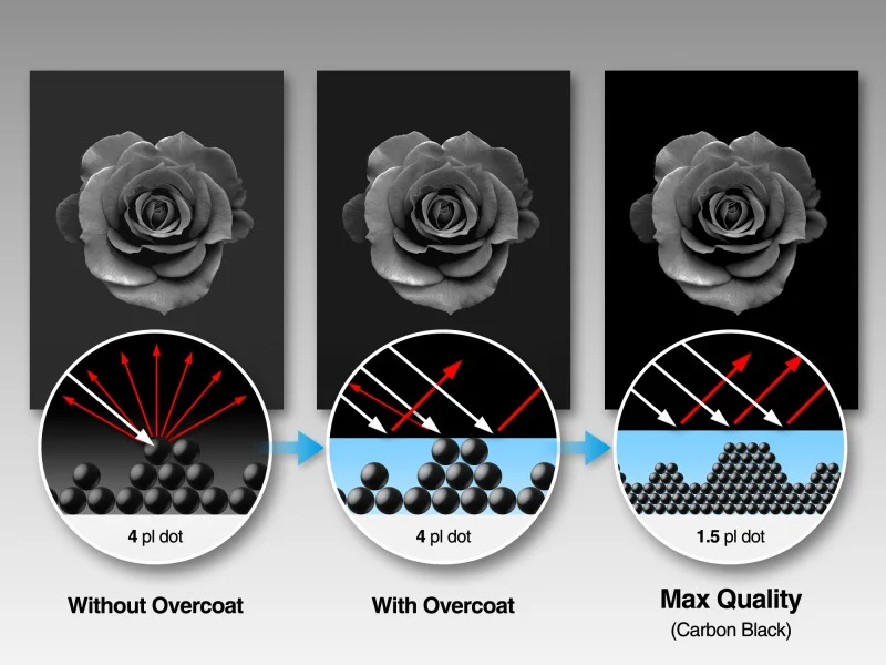 Model SC-P900 oferuje doskonałą jakość druku w standardzie. Zwiększona intensywność czerni gwarantująca lepszą gradację, głębszą czerń i mniejszą ziarnistość została osiągnięta dzięki zastosowaniu atramentu UltraChrome Pro 10, nowej głowicy drukującej F10 i technologii Black Enhance Overcoat (BEO), która zapewnia większą szczegółowość i lepszą teksturę w czarnych obszarach. Rozszerzona gama kolorów niebieskich pozwala użytkownikowi dokładniej odwzorować obraz widziany na ekranie monitora.