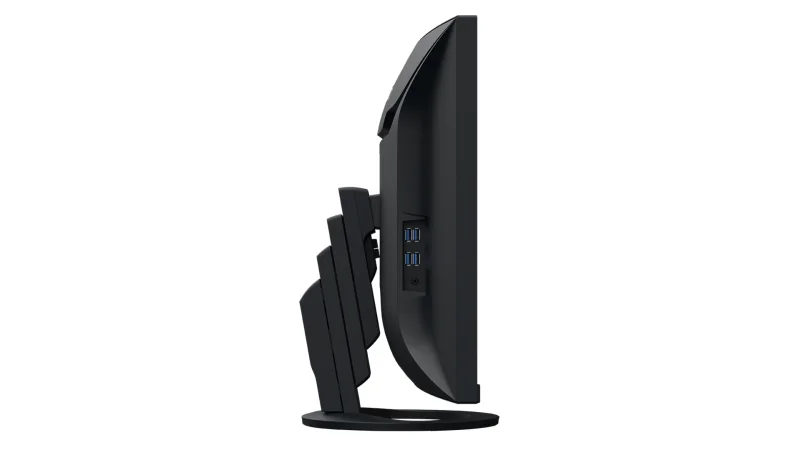 Zamiast tradycyjnych przycisków mechanicznych, monitor Eizo EV3895 został wyposażony w nowoczesne, elektrostatyczne przełączniki zintegrowane z przednim panelem urządzenia. Takie rozwiązanie nie tylko podnosi komfort obsługi, ale również nadaje konstrukcji elegancki i minimalistyczny charakter. Dzięki funkcji Button Guide użytkownik zyskuje szybki i przejrzysty dostęp do wszystkich funkcji monitora - wystarczy delikatne dotknięcie panelu, aby na ekranie pojawiła się czytelna informacja o przypisaniu poszczególnych przycisków. Przemyślana konstrukcja umożliwia intuicyjne sterowanie i sprawną konfigurację parametrów pracy urządzenia bez konieczności zagłębiania się w menu. Zintegrowane głośniki oraz elementy sterujące zostały dyskretnie wkomponowane w przednią ramkę monitora i ukierunkowane bezpośrednio w stronę użytkownika, co gwarantuje optymalne brzmienie i łatwy dostęp do najważniejszych funkcji.