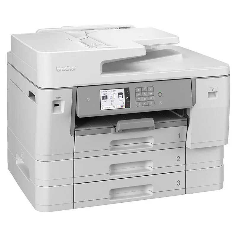 Urządzenie wielofunkcyjne Brother MFC-J6957DW to zaawansowany sprzęt, który łączy w sobie doskonałą wydajność z niskim zużyciem energii. Zaprojektowane z myślą o najwyższej jakości i efektywności pracy, urządzenie obsługuje pełen zestaw funkcji drukowania, skanowania, kopiowania oraz faksowania w formacie A3, co umożliwia szeroki zakres zastosowań i dostosowanie do różnorodnych zadań biurowych. Dzięki technologii NFC, proces druku staje się szybszy i bardziej bezpieczny. Brother MFC-J6957DW zapewnia pełną kontrolę nad procesem skanowania i przesyłania dokumentów. Intuicyjny interfejs umożliwia personalizację ustawień szybkiego skanowania, co pozwala na łatwe przesyłanie dokumentów bezpośrednio do aplikacji biurowych używanych na co dzień. Obsługiwany przez duży, kolorowy ekran dotykowy o przekątnej 8,8 cm, model oferuje łatwy dostęp do najważniejszych funkcji oraz wskaźnik zużycia atramentu.