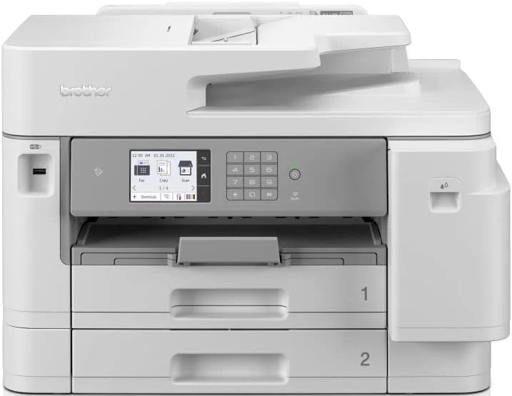 Brother MFC-J5955DW to zaawansowane urządzenie wielofunkcyjne, które łączy w sobie najwyższą jakość druku, energooszczędność oraz niski całkowity koszt eksploatacji, co czyni je doskonałym rozwiązaniem dla firm i biur o dużych wymaganiach. Dzięki temu modelowi, użytkownicy mogą cieszyć się niezawodnym, szybkim i precyzyjnym drukowaniem, kopiowaniem, skanowaniem oraz wysyłaniem faksów, co znacząco zwiększa efektywność pracy i obniża codzienne koszty operacyjne. Urządzenie zostało zaprojektowane z myślą o maksymalnej oszczędności energii, rozpoczynając proces drukowania natychmiast, bez potrzeby wcześniejszego nagrzewania wewnętrznych komponentów. Dzięki pojemnym podajnikom na papier, urządzenie może pomieścić do 500 arkuszy w standardzie, co minimalizuje konieczność częstego uzupełniania papieru. Dodatkowo, uniwersalny podajnik na 100 arkuszy umożliwia korzystanie z różnorodnych nośników o gramaturze do 220 g/m². Automatyczny podajnik dokumentów (ADF) na 50 arkuszy ułatwia szybkie skanowanie i kopiowanie dokumentów w formacie A4.