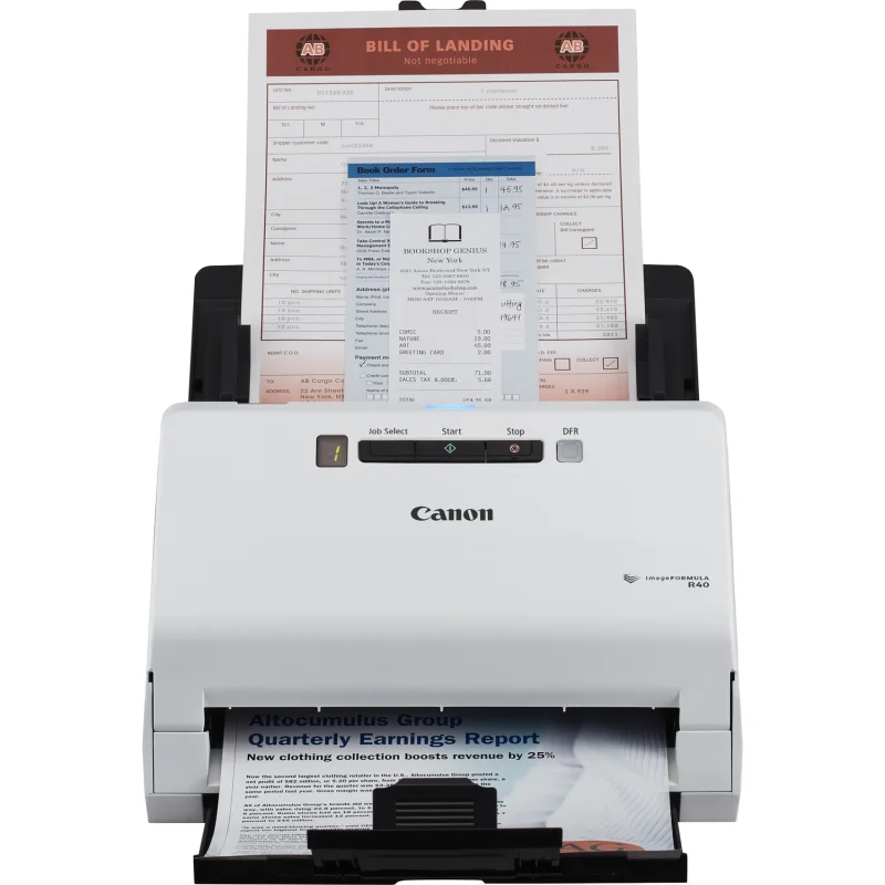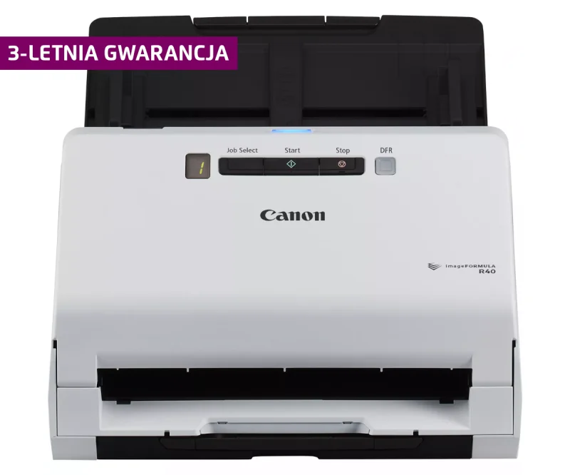Skaner Canon imageFORMULA R40 to doskonałe rozwiązanie dla osób poszukujących szybkiego i łatwego sposobu na digitalizację dokumentów. Dzięki wyjątkowo niewielkiemu rozmiarowi oraz prostemu uruchamianiu skanowania jednym przyciskiem, R40 sprawia, że proces skanowania staje się prosty i wygodny. Ten elegancki skaner, idealny do użytku w domu i małym biurze, zapewnia wiernie odwzorowane obrazy o niezmiennie wysokiej jakości. Wyposażony w niezawodny podajnik na 60 arkuszy, umożliwia skanowanie mieszanych dokumentów o dowolnym kształcie i rozmiarze w ramach jednego prostego procesu. R40 obsługuje różnorodne dokumenty, od standardowych A4 po gruby i cienki papier, w tym karty identyfikacyjne, paragony, pocztówki i dokumenty o długości do 3 metrów. Dzięki możliwości dwustronnego skanowania nawet 40 str/min, oszczędzasz cenny czas. Zaawansowane funkcje przetwarzania obrazu, takie jak automatyczne wykrywanie rozmiaru, orientacji tekstu i kolorów, sprawiają, że nie musisz sortować dokumentów ani często zmieniać ustawień skanowania. Gwarancja: 3 lata (obowiązuje regulamin)