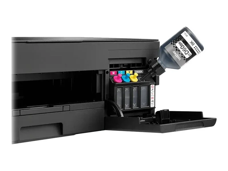 Wraz z urządzeniem DCP-T425W otrzymasz po jednej butelce atramentu koloru: czarnego (wydajność do 7500 stron), cyjan (wydajność do 5000 stron), magenta (wydajność do 5000 stron) i żółtego (wydajność do 5000 stron). Usprawni to Twoją pracę i znacznie obniży koszty druku. Korzystanie z oryginalnych materiałów eksploatacyjnych Brother zapewnia najlepszą jakość i niskie koszty wydruków oraz bezawaryjne działanie urządzenia.