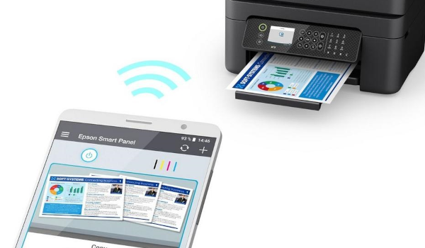 Drukuj z dowolnego miejsca w biurze dzięki łączności Wi-Fi lub korzystaj z Wi-Fi Direct, aby drukować ze zgodnych urządzeń bezprzewodowych bez sieci Wi-Fi. Ponadto dzięki aplikacji Smart Panel firmy Epson możesz sterować drukarką z urządzenia, drukować dokumenty, monitorować i rozwiązywać problemy.