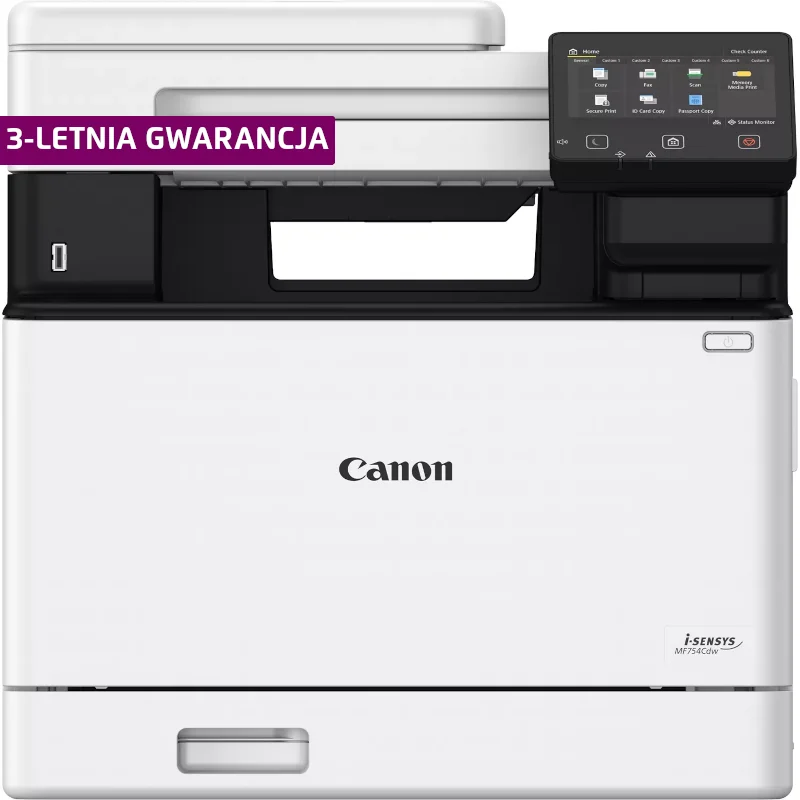 Dzięki drukarce Canon i-SENSYS MF754Cdw codzienne zadania stają się zdecydowanie prostsze. Ta kolorowa wielofunkcyjna drukarka laserowa z zaawansowanymi możliwościami połączeń ułatwia współpracę w chmurze dzięki dostępowi do usług Google Drive, DropBox i OneDrive. Szybkie drukowanie i skanowanie, funkcje kopiowania i faksowania oraz uproszczona obsługa dzięki możliwości dostosowania układu wyświetlacza znacznie skracają czas realizacji zadań. Szybsza praca dzięki drukowaniu 33 stron na minutę (A4) i skanowaniu 100 obrazów na minutę z użyciem jednoprzebiegowego skanowania dwustronnego. Ochrona dokumentów i urządzeń dzięki niezawodnym funkcjom zabezpieczeń obejmującym zaawansowane sprawdzanie systemu zapobiegające atakom hakerskim oraz kod PIN ograniczający dostęp do poufnych dokumentów. Intuicyjna obsługa dzięki możliwości dostosowania wyświetlacza i dodawania za pomocą Biblioteki aplikacji skrótów do często używanych czynności. Zgodność z systemami Windows, Mac OS i Linux