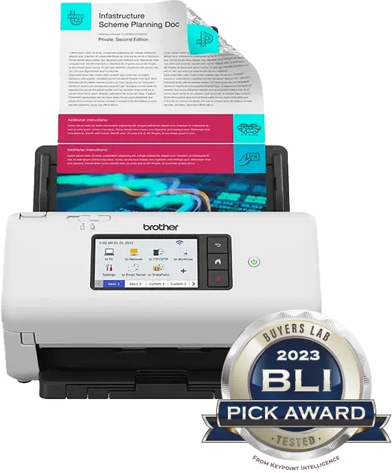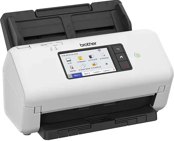 Brother ADS-4700W to biurkowy skaner dokumentów, który oprócz, ultradźwiękowego czujnika pobierania kilku stron, eliminującego błędy podawania, może pochwalić się dużą pojemnością ADF na 80 arkuszy i wysoką prędkością skanowania do 40 str/m. Porty USB 3.0, host USB, interfejsy sieci przewodowej i bezprzewodowej zapewniają bezpieczne skanowanie. Brother ADS-4700W oferuje bezproblemowe przechwytywanie i przetwarzanie obrazów. Od łatwego oznaczania i wyszukiwania zeskanowanych stron za pomocą cyfrowego imprintera, po optymalizację jakości obrazu przy użyciu automatycznych narzędzi do redukcji pionowych smug i efektu mory. Funkcja rozdzielania dokumentów automatycznie wykrywa i usuwa wszystkie zeskanowane puste strony, zmniejszając w ten sposób rozmiar plików i czas jego przygotowania. Oprogramowanie ScanEssentials oferuje dodatkowe funkcje, które można dostosować do potrzeb swojej firmy. Zwiększ produktywność pracy z dokumentami dzięki uznanemu oprogramowaniu, takim jak Kofax i NewSoft, które otrzymujesz razem z urządzeniem.