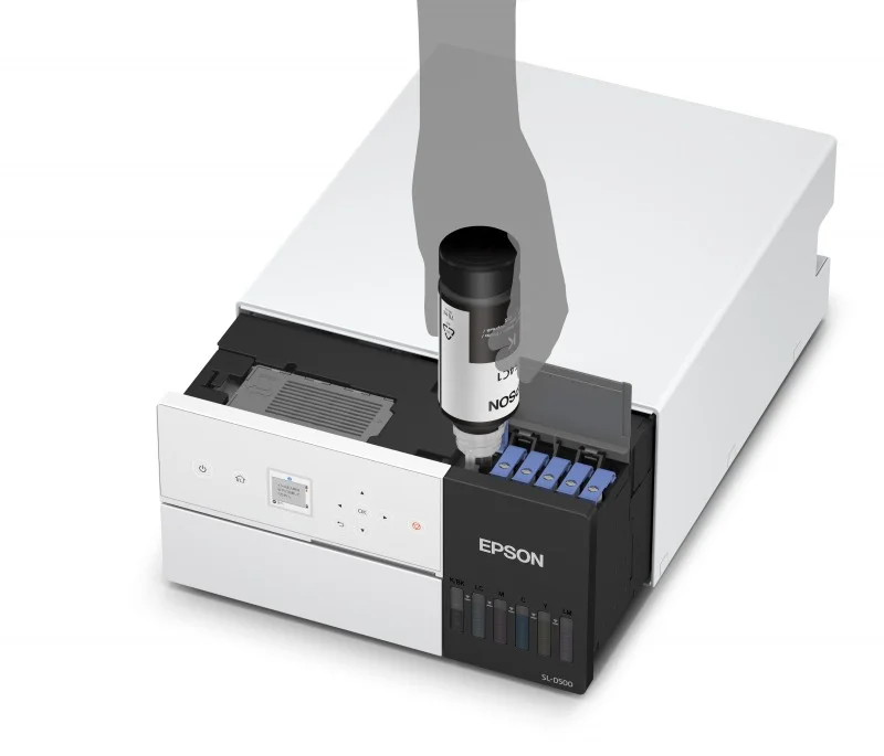 Drukarka SL-D500 Minilab została stworzona z myślą o produkcji nisko-średnioseryjnej i może działać zarówno jako samodzielne urządzenie, jak i w konfiguracji wielokrotnej w celu zwiększenia mocy produkcyjnej. Wyposażona w zaawansowaną technologię druku Epson Micro Piezo™ Thin Film Print™ (TFP), gwarantuje precyzyjne i jednolite wydruki o rozdzielczości sięgającej 1440 x 720 dpi. Dzięki ulepszonemu 6-kolorowemu zestawowi atramentów, aplikowanemu za pomocą technologii Variable Sized Droplet Technology (VSDT), oferuje niezwykłą jakość obrazu, bogactwo kolorów i wyjątkową wartość dMax. Pozostając wierną serii SureLab, drukarka D500 zachowuje swój charakterystyczny kompaktowy i lekki design, co sprawia, że wymaga ona minimalnej przestrzeni roboczej. Jest w stanie wydrukować imponującą ilość aż 250 wydruków bez marginesów w formacie 4x6" na godzinę, przy wykorzystaniu ekonomicznych nośników arkuszowych o rozmiarach 3,5x5" i 4x6". Drukarka SL-D500 jest dostarczana wraz z efektywnym oprogramowaniem obsługującym systemy Windows® i Macintosh®.