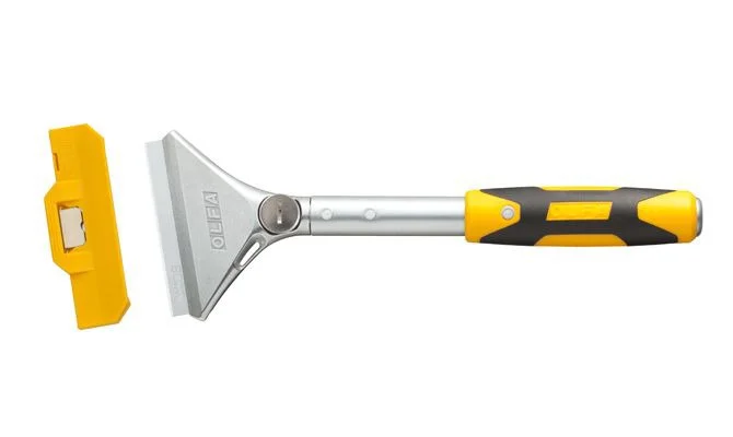 Narzędzie do prac związanych z przygotowaniem powierzchni w trakcie prac remontowo-budowlanych. Solidna konstrukcja umożliwia wyrównywanie i oczyszczanie ścian i podłóg z resztek starych okładzin, tynków, wylewek, starych powłok lakierowych czy kleju. Do skrobaka można zamontować szerokie, elastyczne ostrze BSF, wąskie i sztywne ostrze BS lub wzmocnione profesjonalne ostrze BS08 o grubości 0,8 mm z przeznaczeniem do szczególnie trudnych prac. Do narzędzia można montować również standardowe ostrze segmentowe LB o szerokości 18mm. W zależności od potrzeb ostrze można montować w skrobaku stroną ostrą bądź tępą. Z uwagi na możliwość pobijania młotkiem wzmocniony został uchwyt ostrza i znalazł się w nim otwór na przypięcie smyczy lub linki dla celów bezpieczeństwa. Uchwyt wykonany w żółto-czarnej stylistyce X-Design, będący kombinacją miększego, czarnego elastomeru i twardszego, żółtego kompozytu wypełnionego włóknem szklanym - o wyjątkowej trwałości i odporności na działanie rozpuszczalników, kwasów, olejów i smarów. Do skrobaków dołączono wygodną i bezpieczną osłonę ostrza wykonaną z tworzywa sztucznego w firmowym żółtym kolorze.