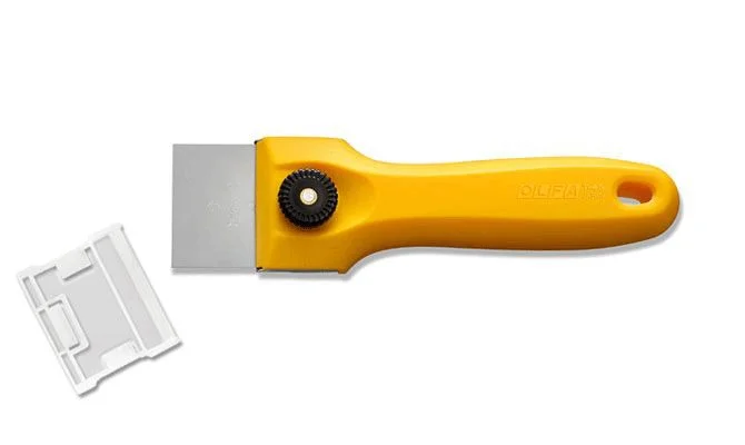 Ostrze można w zależności od potrzeb zamontować stroną naostrzoną lub tępą, plastikowa osłona chroni przed skaleczeniem gdy skrobak nie jest używany.