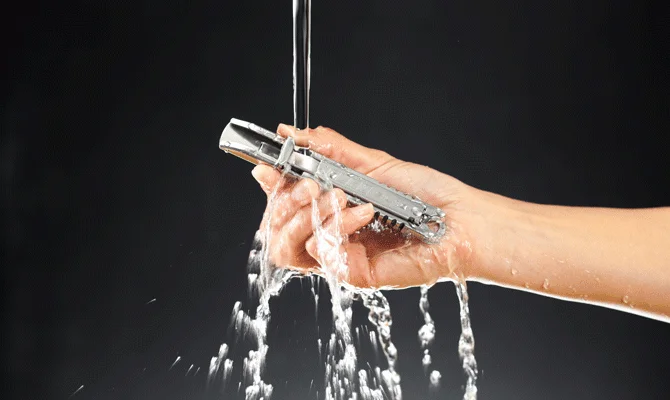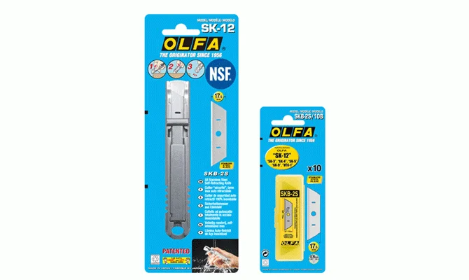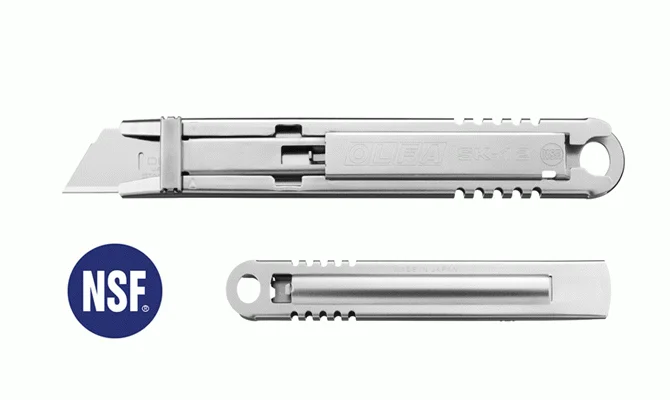 Nierdzewne ostrze i uchwyt umożliwiają pracę w wilgotnym środowisku a "otwarta" prowadnica ostrza ułatwia mycie i dezynfekcję narzędzia - również przy wykorzystaniu podchlorynu sodu, często wykorzystywanego do mycia i dezynfekcji urządzeń m.in. mających kontakt z żywnością. Rękojeść oraz ostrze noża SK-12 zostały wykonane w całości z magnetycznej stali nierdzewnej. Stanowi to duże ułatwienie dla przemysłowych systemów detekcji metali przeznaczonych do przetwórstwa spożywczego oraz przemysłu farmaceutycznego. Nóż ten jest dużo skuteczniej wykrywalny niż narzędzia wykonane z modyfikowanych tworzyw sztucznych.