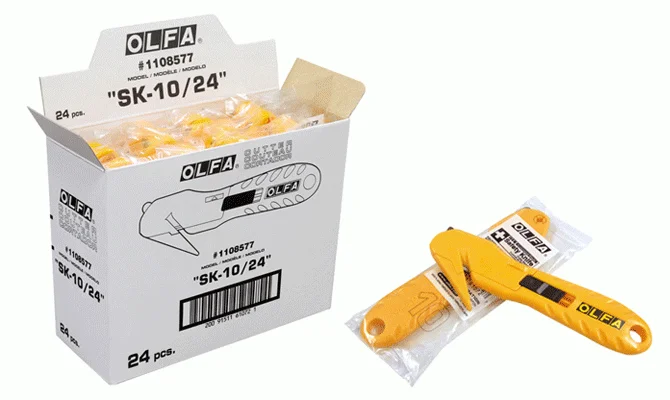 Nóż SK-10 przyczynia się do zwiększenia bezpieczeństwa w miejscach takich jak centra dostaw czy firmowe magazyny. Ostrze noża jest ukryte głęboko w rękojeści aby uniknąć niezamierzonego skaleczenia użytkownika i uszkodzenia rozpakowywanych towarów. Nóż wyposażony został w prowadnik w kształcie dzioba, który wsunięty pod przecinaną folię/taśmę pozwala na jej naprężenie ułatwiające przecięcie.Zaokrąglona wypustka na wierzchołku noża / wykonana ze stali nierdzewnej / bez problemu przecina samoprzylepne taśmy pakunkowe.