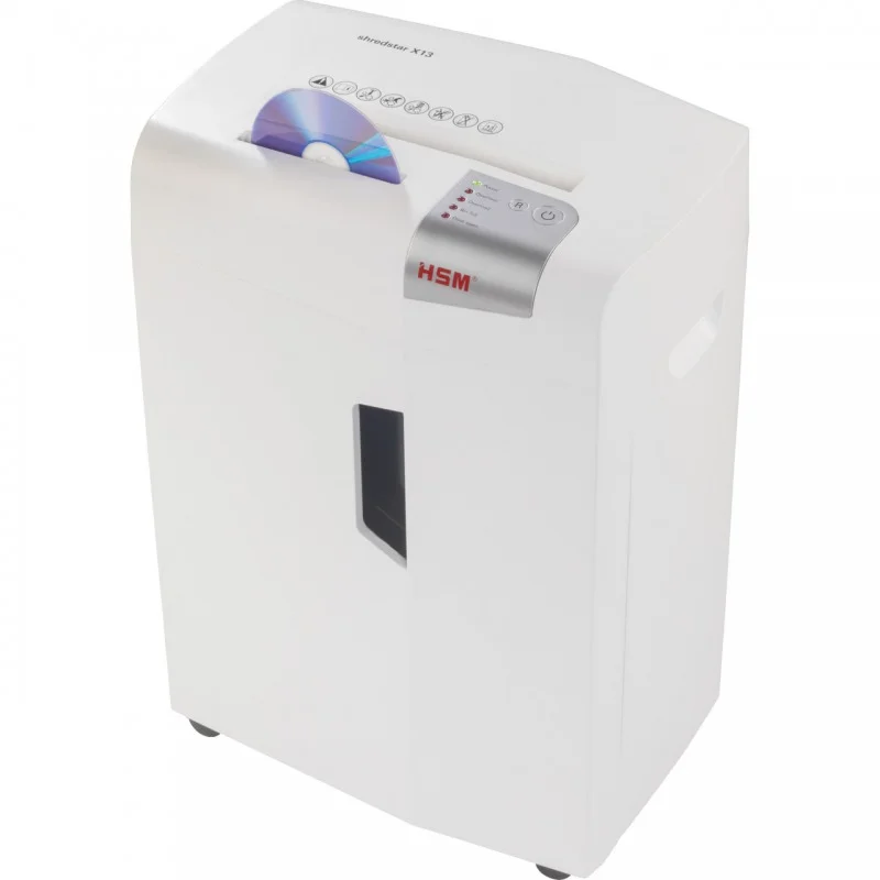Niszczarka dokumentów HSM shredstar X13 to niezawodne i bezpieczne rozwiązanie, które gwarantuje najwyższy poziom ochrony danych w serii HSM shredstar. Wyposażona w solidne koła, umożliwia łatwe przemieszczanie się po biurze, zapewniając elastyczność i wygodę w użytkowaniu. Dzięki swojej zaawansowanej funkcjonalności, niszczarka HSM shredstar X13 skutecznie tnie dokumenty na małe ścinki, zapewniając niezrównane bezpieczeństwo danych. Dodatkowo, oddzielna szczelina do niszczenia płyt CD gwarantuje kompleksową ochronę różnych nośników informacji. Niszczarka jest wyposażona w oddzielny pojemnik na ścinki, umożliwiający wygodną segregację zniszczonego materiału i jego późniejszą utylizację. Informacja o zapełnieniu kosza jest wyświetlana na czytelnym wyświetlaczu, a automatyczne wyłączanie urządzenia zapewnia efektywność pracy i oszczędność energii. Dzięki funkcji automatycznego wycofania papieru, niszczarka HSM shredstar X13 skutecznie zapobiega zacięciom, co eliminuje przestojów i zapewnia płynne działanie maszyny.