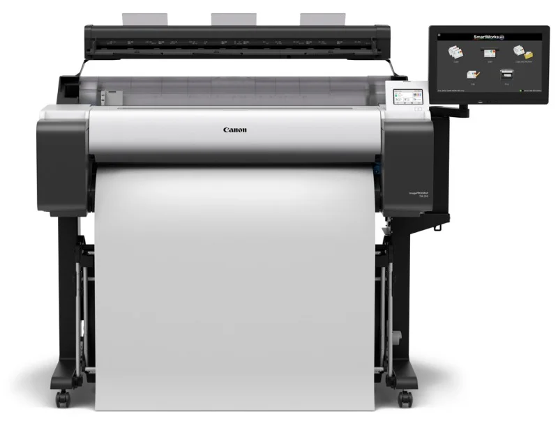 Canon charakteryzuje się funkcjonalną konstrukcją ekranu dotykowego o przekątnej wynoszącej 4,3 cala. Ten zaawansowany panel dostarcza użytkownikowi jasne i klarowne instrukcje, a także kluczowe informacje, takie jak rodzaj używanego nośnika, ilość dostępnych nośników oraz aktualny poziom atramentu. Co ważne, nowa konstrukcja umożliwia dostosowanie pozycji ekranu w pionie, co zwiększa wygodę obsługi i dostosowanie urządzenia do indywidualnych preferencji użytkownika. To podejście do funkcjonalności ułatwia pracę.