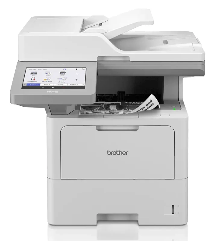 Automatyczny dwustronny podajnik dokumentów (ADF) na 80 arkuszy oraz podajnik papieru na 520 arkuszy z opcją rozbudowy do pojemności 2 600 arkuszy zapewniają elastyczność w obszarze obsługi dokumentów, co stanowi kluczowy element pracy biurowej. W zestawie z urządzeniem znajduje się toner o wydajności do 11 000 stron, a maksymalna dostępna wydajność wynosi aż 25 000 stron. To oznacza, że urządzenie jest gotowe do długotrwałego użytkowania bez konieczności częstych zmian tonera, co przekłada się na oszczędności i wydajność. Kompatybilność z rozwiązaniami firmy Brother oraz innymi dostawcami ułatwia integrację urządzenia z innymi elementami infrastruktury biurowej. W pakiecie z urządzeniem znajdziesz rozwiązania Barcode Print+, Secure Print+ oraz Spersonalizowany Interfejs Użytkownika, które poprawiają wydajność i zwiększają elastyczność pracy. NFC do bezpiecznego uwierzytelniania to dodatkowa warstwa zabezpieczeń. Dostępność urządzenia w ramach umowy na Usługi Zarządzania Drukiem (MPS) pozwala zoptymalizować procesy drukowania i obniżyć koszty operacyjne.