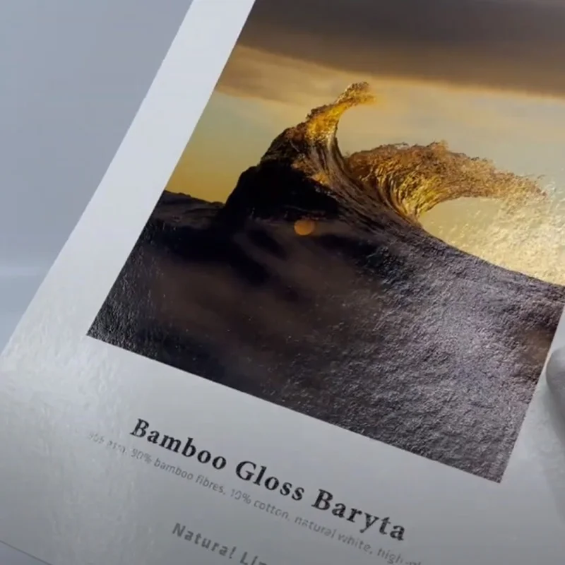 Hahnemühle Bamboo Gloss Baryta to innowacyjne rozwiązanie w dziedzinie mediów do druku, stanowiące pionierski krok w kierunku zrównoważonego wykorzystania materiałów. Zawartość aż 90% włókien bambusa w składzie tego papieru jest wyrazem zaangażowania w ochronę środowiska naturalnego. Wyposażony w ekskluzywną barytową powłokę atramentową, ten naturalnie biały papier wyróżnia się przyjemnym, ciepłym odcieniem i brakiem wybielaczy optycznych. Jego delikatnie strukturalna powierzchnia nadaje mu wyjątkową estetykę, która przywodzi na myśl tradycyjne papiery barytowe, zarówno pod względem wizualnym, jak i w dotyku. Powłoka atramentowa na papierze Hahnemühle Bamboo Gloss Baryta zapewnia wyjątkową jakość wydruków, charakteryzując się doskonałą reprodukcją kolorów i detali, głębokimi tonami czerni oraz wyrazistymi kontrastami. Dodatkowo, obecność siarczanu baru w powłoce podnosi zakres tonalny, gwarantując niezwykle precyzyjne efekty druku. Papier ten spełnia również najwyższe standardy odporności na procesy starzenia się, co zapewnia trwałość i integralność wydruków przez długie lata.